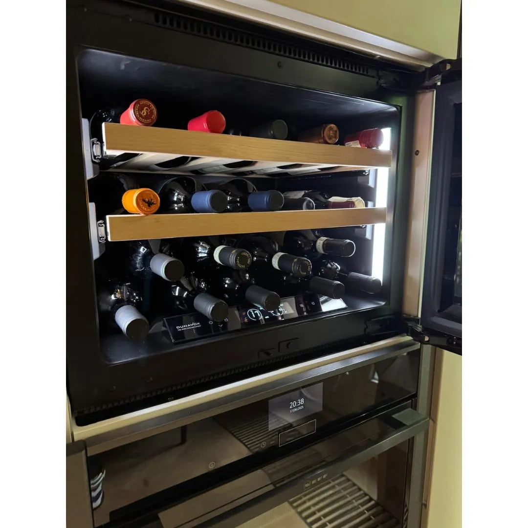 De Dunavox Spirit-19 is een compacte en stijlvolle wijnkoelkast met een capaciteit van 19 flessen. Dankzij het geïntegreerde ventilatiesysteem in de deur kan deze wijnkoelkast zowel als inbouw- als onderbouwmodel worden geplaatst. De Spirit-19 combineert een elegant ontwerp met moderne technologie voor optimale wijnopslag.