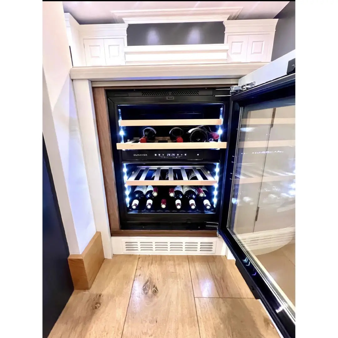 De Dunavox DAUF-39.119DOP.TO onderscheidt zich door zijn moderne greeploze ontwerp met push-to-open technologie, waardoor de deur eenvoudig opent door erop te drukken. Het interieur is uitgevoerd met LED-verlichting in wit, amber of blauw en voorzien van telescopische houten leggers voor overzichtelijke opslag. Dankzij het lage geluidsniveau en de flexibele installatieopties is dit model geschikt voor zowel onderbouw als vrijstaand gebruik.