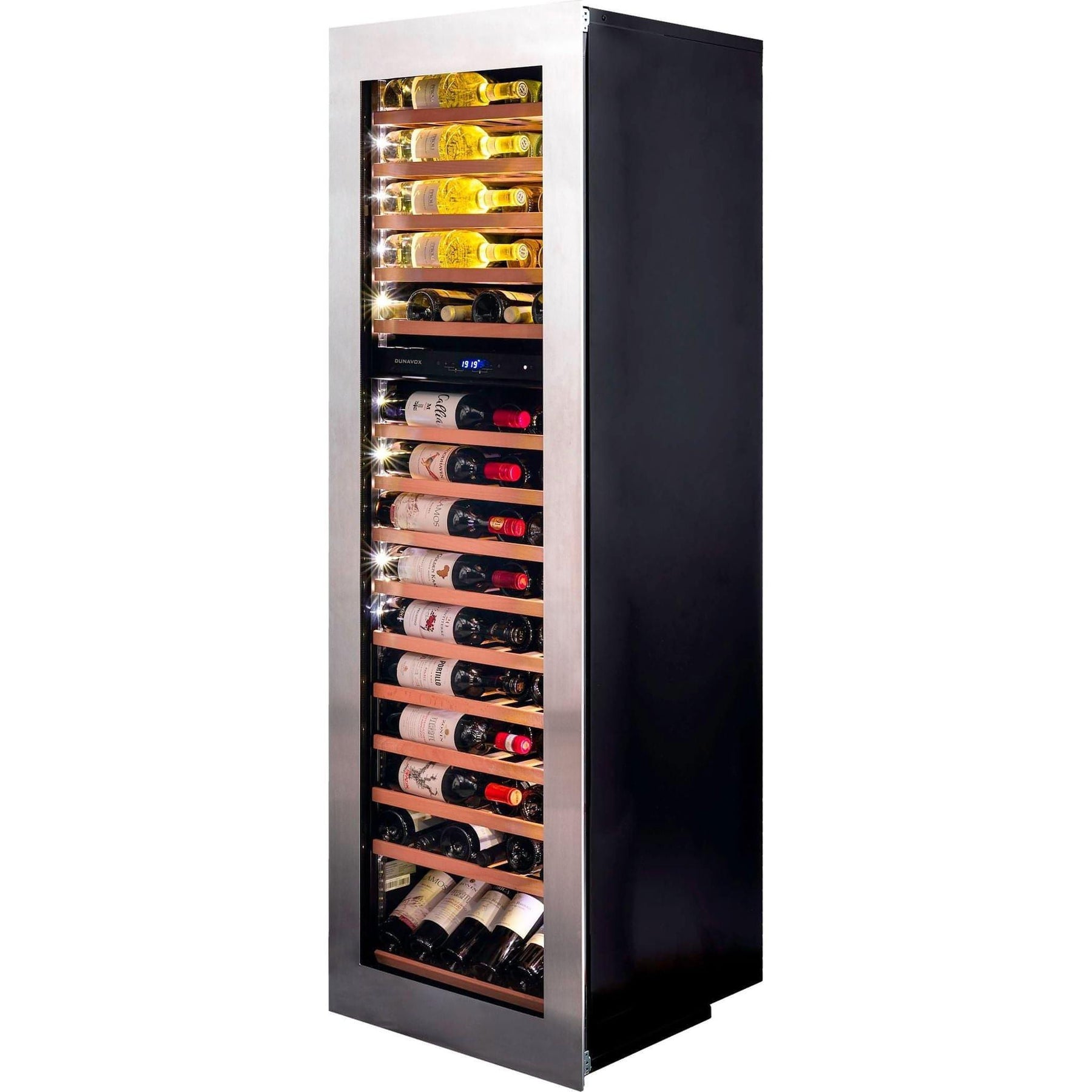 De Dunavox Horizon-114 is een luxe inbouw wijnkoelkast met ruimte voor maar liefst 114 flessen. Sinds 2023 is dit het grootste inbouwmodel binnen het assortiment van Dunavox. De Horizon-114 combineert een enorme opslagcapaciteit met fluisterstille werking en wordt geleverd met 3 jaar fabrieksgarantie.