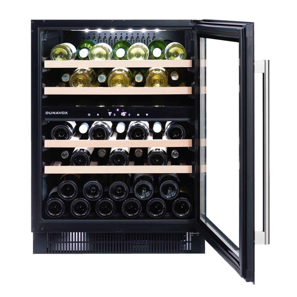 De Dunavox DAUF-39.121DMB onderscheidt zich door zijn elegante ontwerp met roestvrijstalen handgreep en mat zwarte afwerking, waardoor hij perfect integreert in moderne keukens. Het interieur is uitgevoerd met LED-verlichting in wit, amber of blauw en voorzien van massieve houten leggers voor overzichtelijke opslag. Dankzij het lage geluidsniveau en de flexibele installatieopties is dit model geschikt voor zowel onderbouw als vrijstaand gebruik.