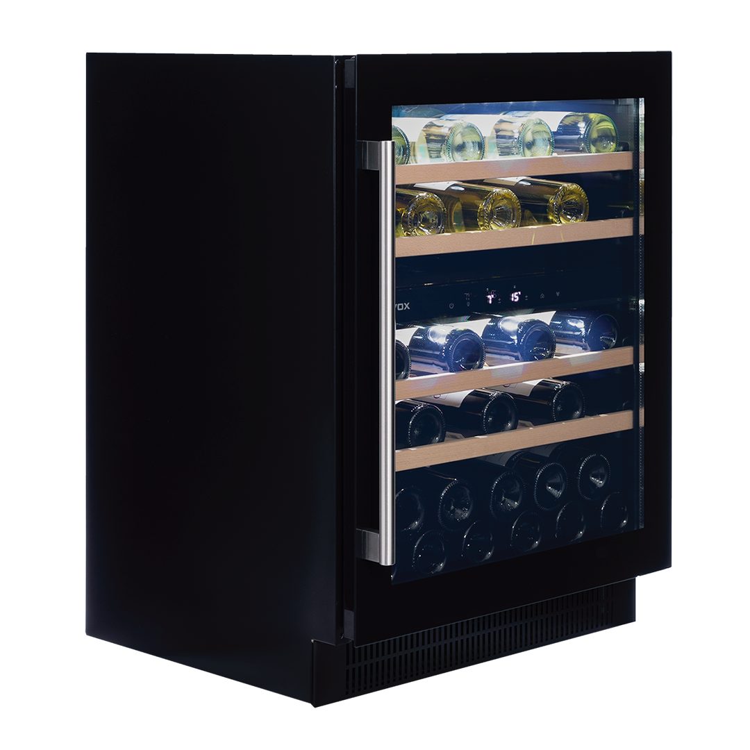 De Flow-39 biedt ruimte aan 39 Bordeauxflessen (0,75 l) verdeeld over twee afzonderlijke temperatuurzones. De bovenste zone is instelbaar van 5 tot 10 °C en de onderste zone van 10 tot 18 °C, ideaal voor zowel rode als witte wijnen. Het model beschikt over ventilatorondersteunde compressorkoeling en automatische ontdooiing voor een stabiele temperatuurverdeling.