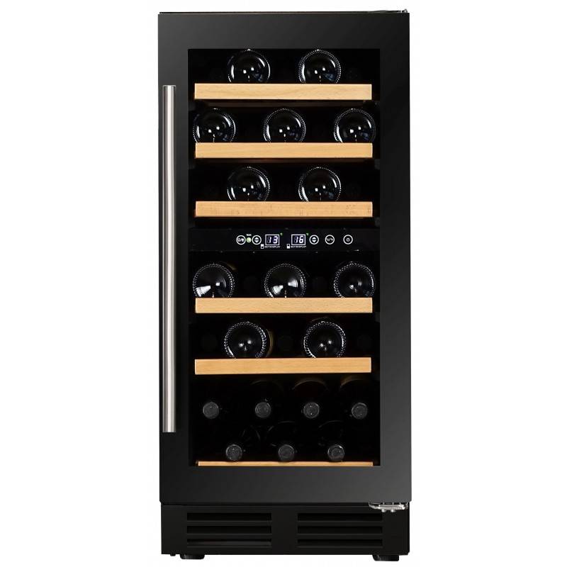 De DAUF-32.78DSS is geschikt voor inbouw onder een aanrecht of kookeiland, maar kan ook vrijstaand worden geplaatst. Het interieur beschikt over uitschuifbare houten leggers en multi-LED binnenverlichting, instelbaar in wit, oranje en blauw. De deurlijst is van naadloos RVS en het getinte glas beschermt de flessen tegen UV-straling. De deur opent via een RVS stanggreep, optioneel verkrijgbaar in zwart. Dankzij de dynamische compressor en geventileerde koeling hoeft u minder rekening te houden met de omgevingstemperatuur en heeft u meer vrijheid bij het plaatsen van de kast. De wijnkoelkast heeft geen slot op de deur.